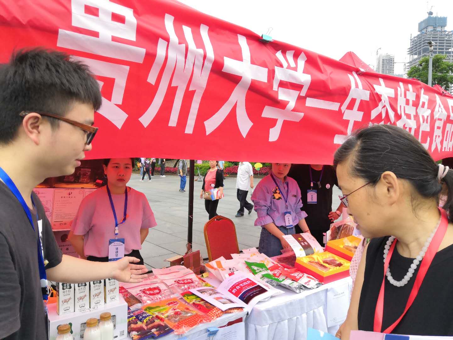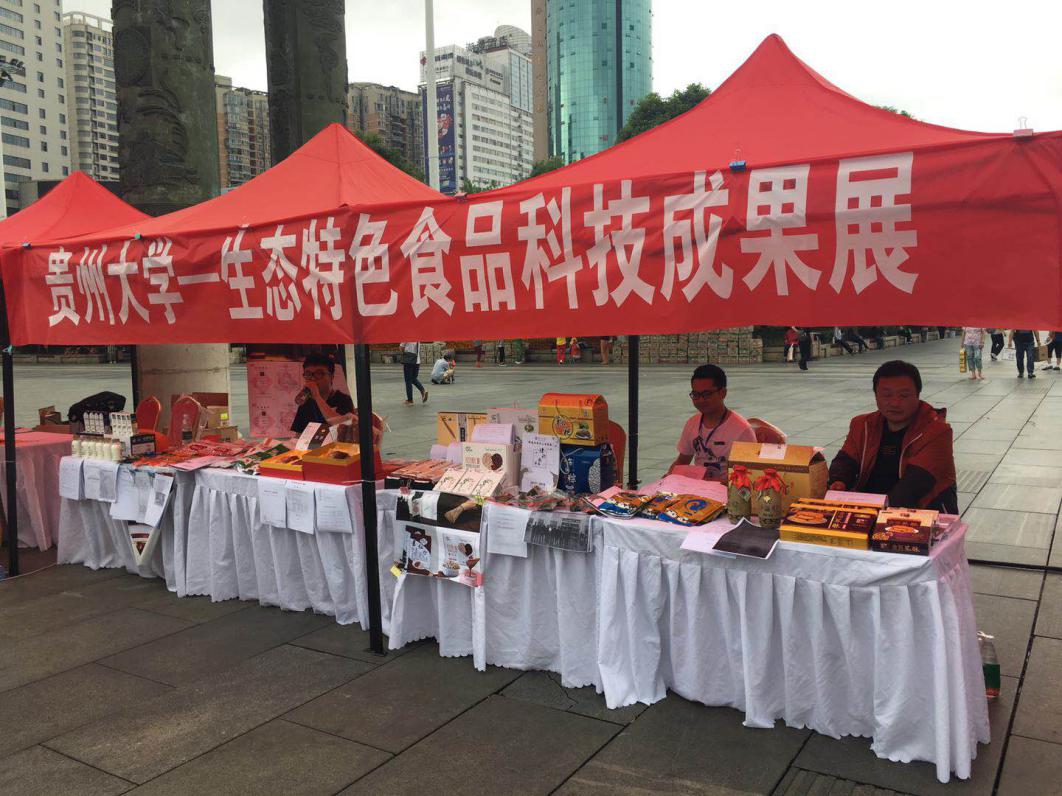 2019年5月19日早上9点,以“科技强国·科普惠民”为主题的大型各类特色科普活动在贵阳市筑城广场启动,我院代表贵州大学以生态特色食品科技成果为主题参展了本次活动 ,展示了我院与企业的一些合作成果,如地方特色盘县火腿,永红牛肉干,三联乳制品等产品及与其相关的学术研究成果,吸引了众多市民前来了解。在市民了解咨询的过程中,我院同学对产品及其特点进行了耐心的讲解,达到了良好的科普效果。
