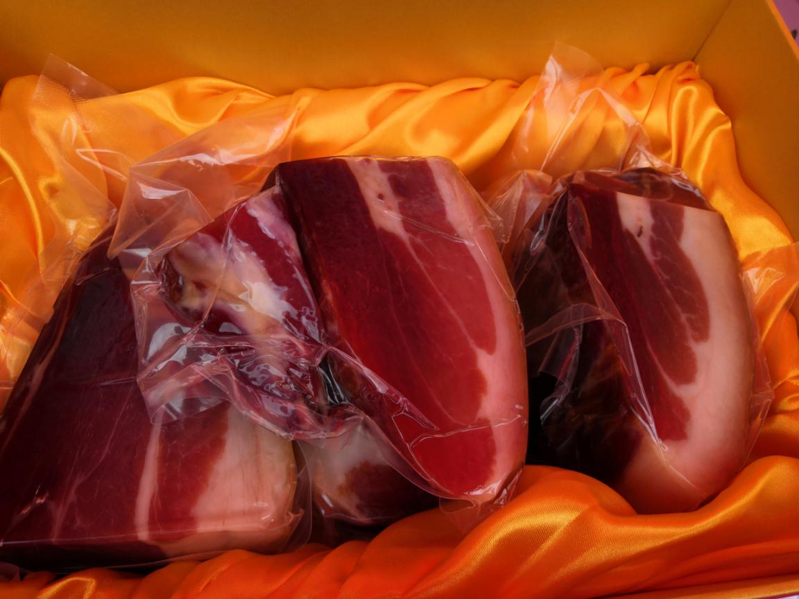 盘县火腿,是云贵高原的火腿,与宣威火腿、金华火腿一起是中国的三大火腿。盘县火腿形似琵琶,皮色亮黄,肉色红润鲜艳,香味清正浓郁,味道咸香可口,油而不腻,是贵州名特色产品。2010年9月30日,原国家质检总局批准对“盘县火腿”实施地理标志产品保护。