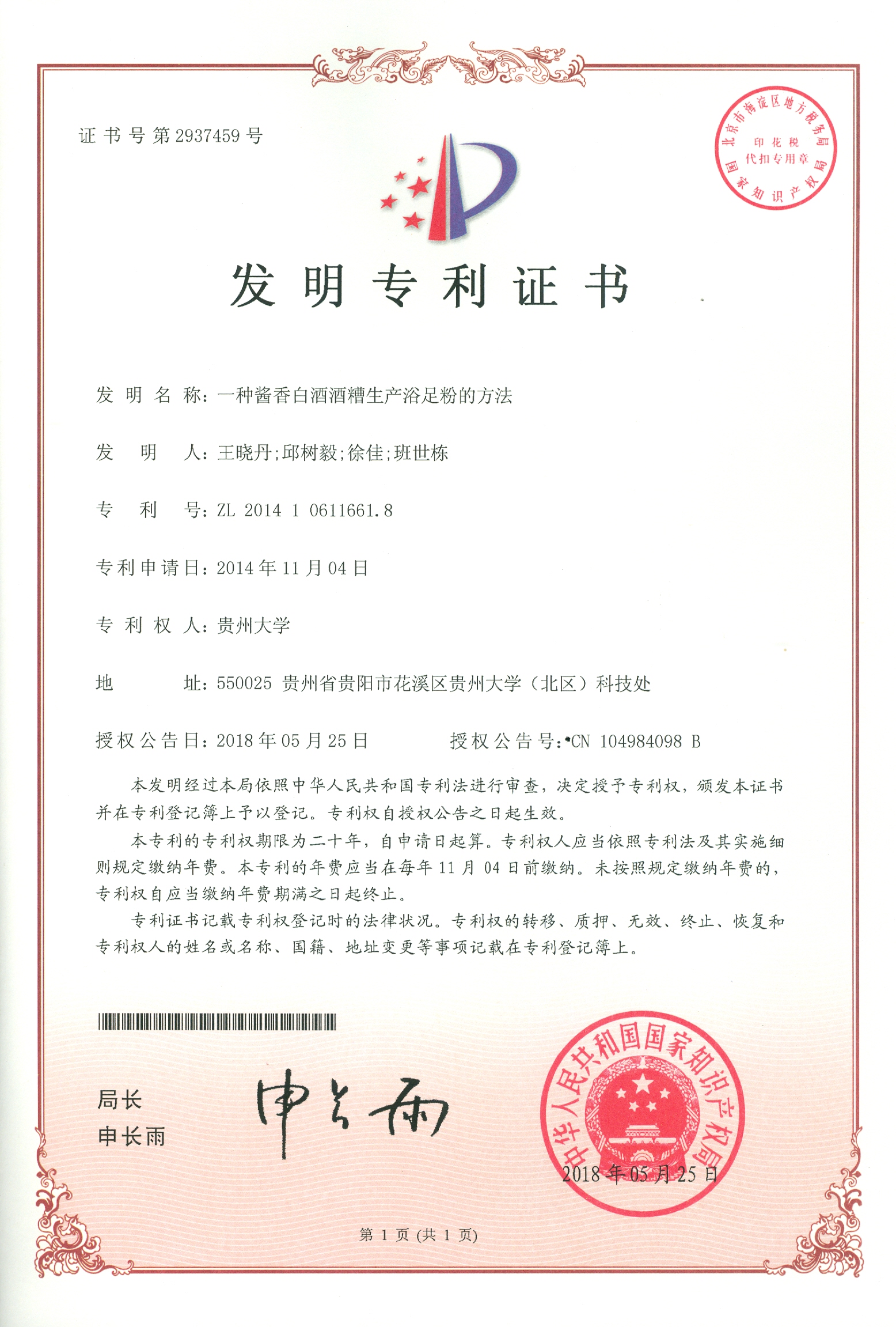 参展的赖茅酒宝是以酱香型白酒丟糟为原料,通过进一步发酵制备发酵型酒糟,精选20余种药用植物,按照不同方式混比、配比和深度加工后生产出浴足保健产品,洗浴保健产品。过程中解决基于酒糟二次发酵制备和发酵酒糟与加工后的中草药复配的关键技术。技术路径以选取富含所需有效成分的酱香型酒糟为原料,酵母为发酵菌株,进一步发酵酒糟,再以之为原料,经过灭菌,与不同方式精细加工的药用植物(作物)混合干燥,采用有效成分评价其功能性。不添加任何人工化学品类,属于天然有机类产品,通过检测、排异、计量真空包装转为附加值更高的浴用保健用品。当初红军长征进入茅台镇,曾用茅台美酒擦脚及疗伤洗尘,酒糟外敷洗浴,使健康状态明显恢复,盛赞其功效独特,美赞盛传至今!