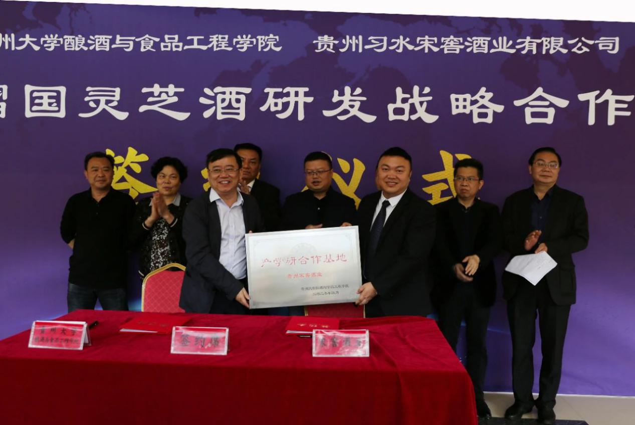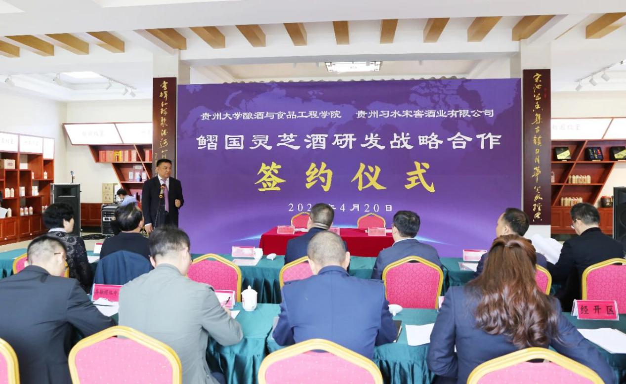 2020年4月20日,我院与贵州习水宋窖酒业合作研发鰼国灵芝酒战略签约仪式,在宋窖游客接待中心举行。