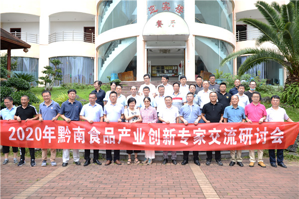 2020年8月5日上午,由贵州大学酿酒与食品工程学院和贵州黔之爱生物技术有限公司发起,联合黔南民族职业技术学院、贵州食品工程职业学院和贵州省食品工业协会共同主办的“2020年黔南食品产业创新专家交流研讨会”在龙里县龙架山森林公园举行,共同把脉贵州食品生物产业发展,谋划贵州食品院校、科研检测机构、行业协会和食品企业与广东开展创新合作,共谋黔南食品产业创新发展大计。
