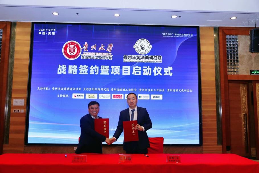 12月19日,贵州大学酿酒与食品工程学院与贵州王茅酒曲研究院强强联手、合作共赢,在贵阳正式签订了战略合作协议书,双方就加强酒曲的科技创新和科学研究、技术升级人才培养等诸多方面达成了战略共识,并共同成立了酒曲的产、学、研实验平台,为更好地适应白酒市场多元化的发展与需求,培养新时代酒曲研发技术人才,为贵州酱香白酒的持续发展做出贡献。