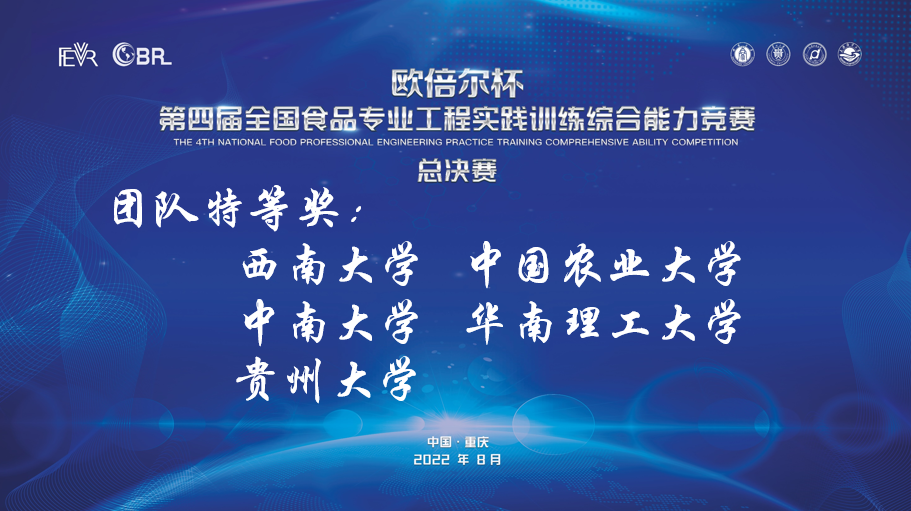 8月9日至13日,由教育部高等学校食品科学与工程类专业教学指导委员会指导,江南大学主办,西南大学、教育部食品科学与工程实验教学示范中心(西南大学)承办、北京欧倍尔软件技术开发有限公司协办的“欧倍尔杯”第四届全国食品专业工程实践训练综合能力竞赛总决赛,采用线下和线上相结合的方式在西南大学举办。