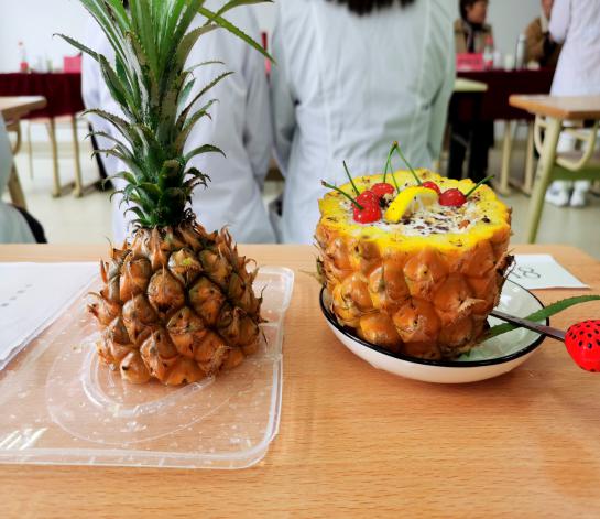 4月9日中午1点,参赛选手到实验室开始酸奶制作。经过十多个小时的发酵,4月10日早上8点,选手们开始对发酵成功的酸奶进行后期制作。实验室里的同学们忙碌穿梭着,很快,各种口味、风格、造型各异的酸奶就在同学们的手中呈现。有在酸奶中加入奥利奥的、加各种水果的,还有加入桃花酒的;有用菠萝做盛具,用各种水果做修饰,用薄荷叶做点缀,用模具将酸奶摆出花的模样……装饰完成后由参赛选手依次上台展示、介绍参赛作品,并由评委老师品尝打分。