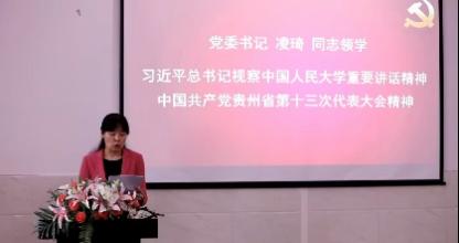 学院党委书记凌琦领学习近平总书记视察中国人民大学的重要讲话精神、给北京科技大学老教授的回信精神;传达中国共产党贵州省第十三次代表大会精神;并结合学院实际,就如何贯彻落实相关精神提出工作要求。