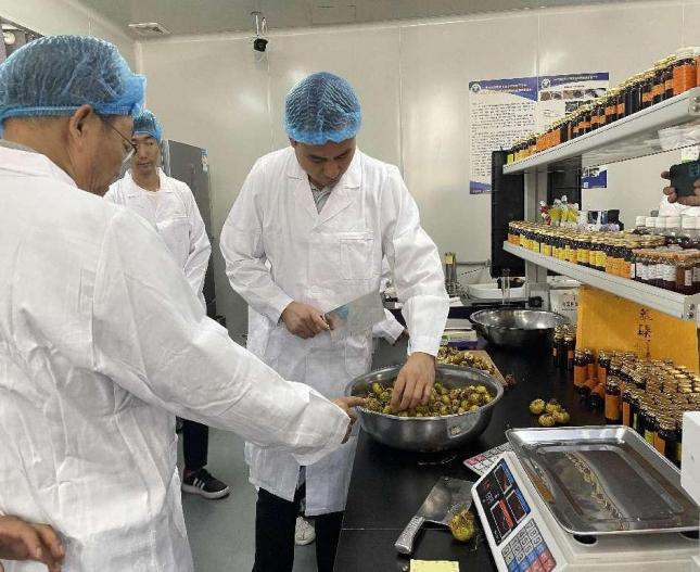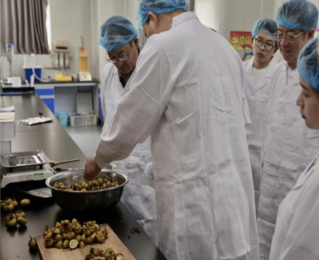 针对刺梨渣的利用情况,谭院长向企业普及了如何判定刺梨渣的品质,并表示刺梨渣作为微生物的培养基底料、食用菌的生产料等能够更好地对刺梨渣进行高值利用。
