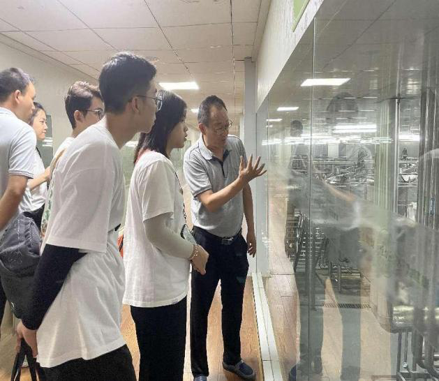 随后在品控经理费建军的引领下我们对恒力源集团的生产区域进行了参观学习。贵州大学酿酒与食品工程学院谭书明副院长从刺梨的清洗、破碎、压榨、酶解、降温、过滤、浓缩、杀菌、灌装等一系列初加工过程中存在的注意事项对企业的品控人员以及同学们进行了普及,面对面的答疑解惑。