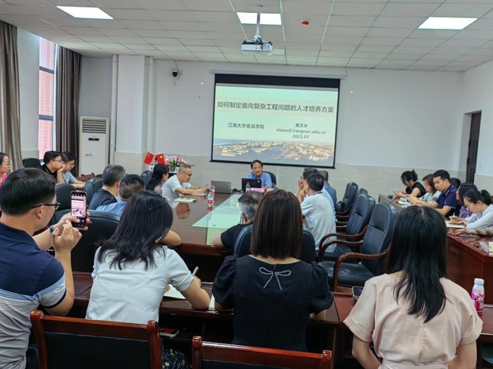 2023年7月25日,我院食品科学与工程专业工程专业教育认证培训会在崇德楼237会议室举行。中国工程教育专业认证专家委员会专业认证分委员会副秘书长、教育部食品科学与工程类专业教学指导委员会秘书长、江南大学夏文水教授拨冗为我院食品科学与工程专业工程教育认证把脉问诊。培训会由副院长秦礼康主持,学院党委书记凌琦、正处级组织员汤德元、副院长谭书明、副院长朱秋劲及食品科学与工程、食品质量与安全专业全体教师参加。