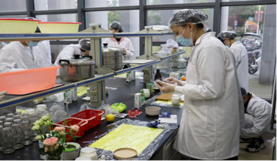 第一阶段--制作。选手们严格按照比赛规则进行酸奶发酵及制作。在这一过程中,选手们精心制作比赛用的酸奶,然后对酸奶进行调味、添加材料、造型设计等,锻炼提升选手们的动手能力、创新能力。