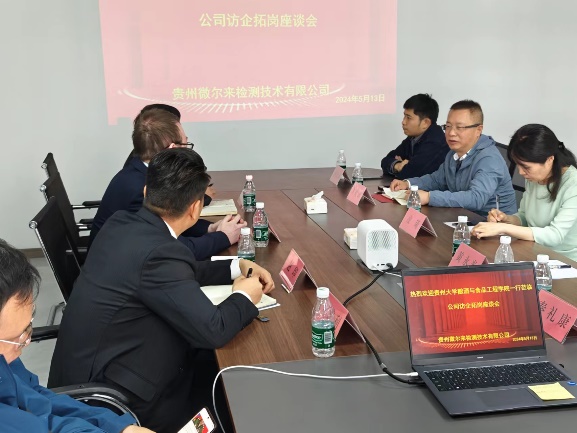 简忠领董事长介绍了微尔来公司的发展历程、发展现状、未来公司规划、校企合作规划。董事长及几位负责人均是为贵州大学的校友,贵州微尔来检测技术有限公司经过贵州大学科技园孵化得以成长,2024年初迁至贵阳市小孟工业园,公司初创至今仅3年左右的时间,产值已上千万。简总表示贵州大学有着人才、科技、成果等优势,希望双方在未来能开展校企合作共赢,相信成果必然能助力贵州食品检测产业高质量发展。