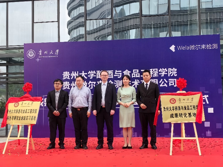 2024年5月13日上午9时,贵州大学酿酒与食品工程学院与贵州微尔来检测技术有限公司合作共建的成果转化基地、本科生与研究生创新实习基地揭牌仪式在贵阳市孟关工业园区举行。公司董事长简忠领率副董事长王飞、总经理赵印及全体员工精心策划此次揭牌仪式,热烈欢迎前来参加仪式的学院领导和教师有党委书记凌琦、院长黄永光教授、副院长朱秋劲教授、秦礼康教授和食品质量与安全专业教研室副主任刘远远博士、刘雄利教授等一行。总经理赵印主持揭牌仪式,在双方领导致辞后,与会人员共同见证公司董事长、副董事长和学院书记、院长代表双方揭牌,仪式简短且浓重。仪式结束后,董事长简忠领带领大家移步至公司主体大楼六楼实验室参观、座谈会及访企拓岗交流。