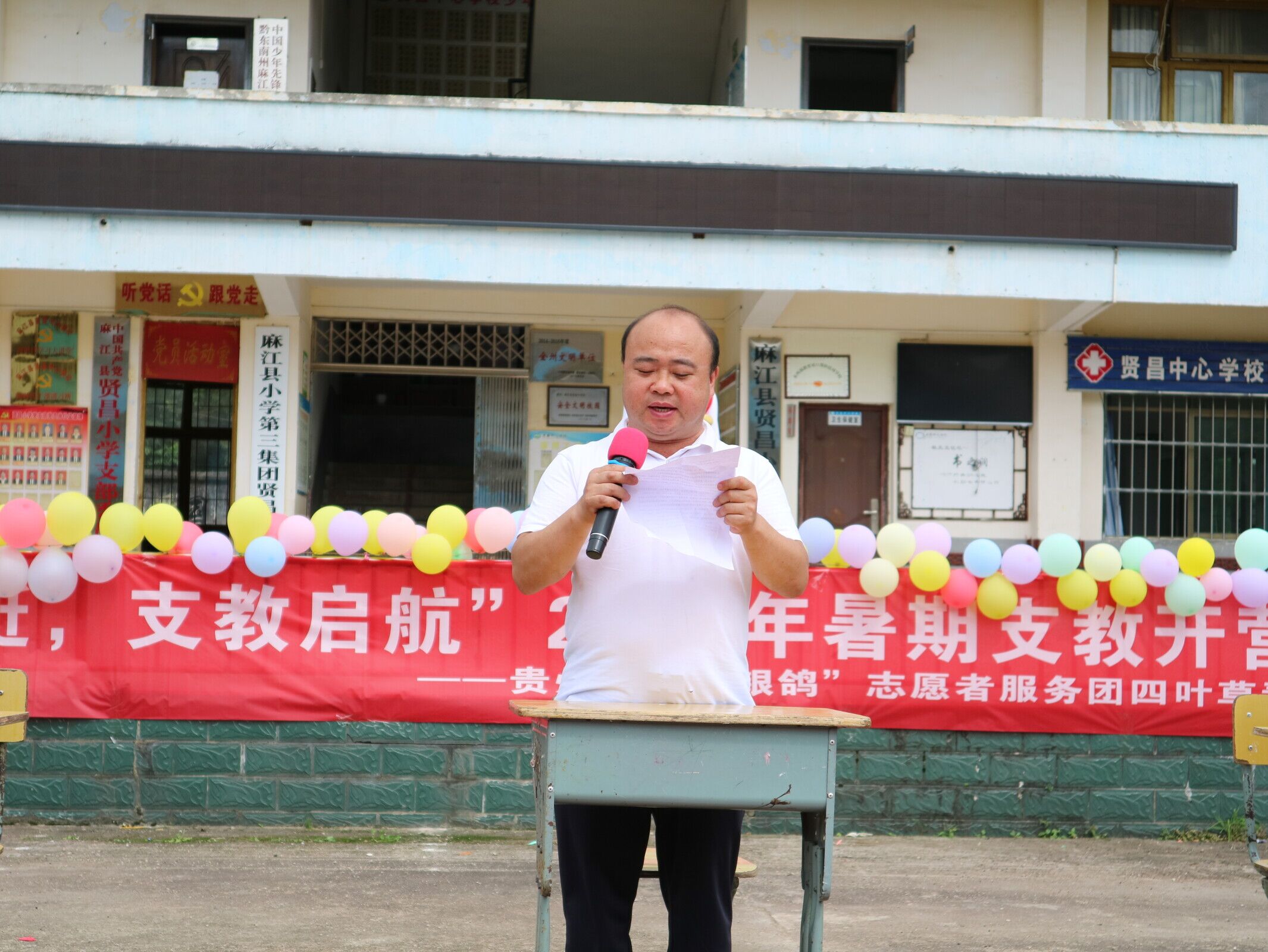 活动开始,贤昌中心学校杨胜泉校长热烈欢迎实践队的到来,期望成员们秉承不畏艰难、团结一心的精神,用才华和热情为同学们打开一扇扇认识世界的大门。