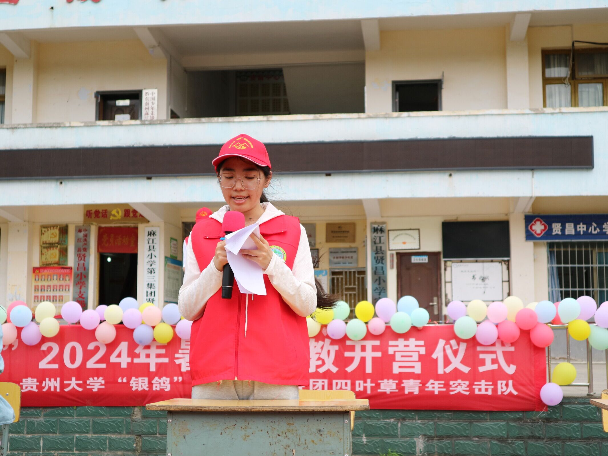 青春逐梦正当时,不负韶华勇担当。为弘扬和践行“奉献、友爱、互助、进步”的志愿精神,到祖国基层去受教育、长才干、作贡献,贵州大学“银鸽”志愿者服务团四叶草青年突击队18名师生于2024年7月12日到黔东南州麻江县贤昌中心学校开展为期14天的暑期“三下乡”社会实践活动。