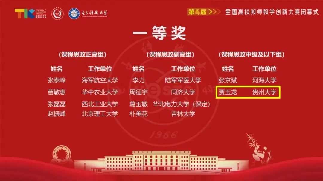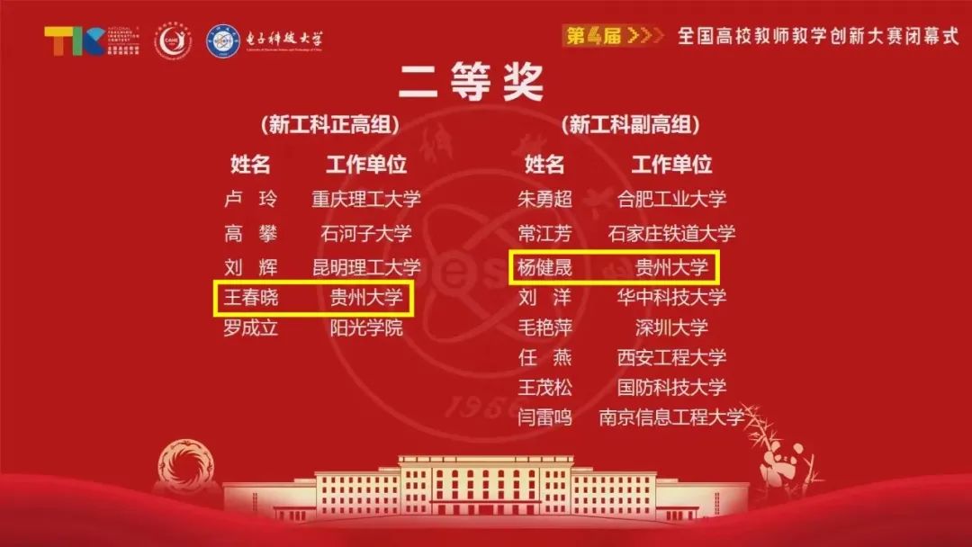 2024年7月28-31日,第四届全国高校教师教学创新大赛在电子科技大学举行。我院参赛教师(团队)获得优异成绩,贾玉龙荣获课程思政中级及以下组国赛一等奖,王春晓荣获新工科正高组二等奖,取得该赛事上的历史性突破!