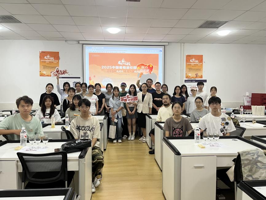 “蒲萄四时芳醇,瑠璃千钟旧宾”。千年前,诗人陆机妙笔生花,琉璃杯中美酒满溢,座上宾客畅谈欢笑。时光流转,在这硕果累累的九月,一场融合了文化、知识与品味的葡萄酒盛宴盛大开启。2025中国葡萄酒校园公开课线上线下共计10.3万人参加。贵州大学共有35名同学参加本次公开课。活动以“葡香盈秋九月天,丹霞入盏化琼田”为主题。